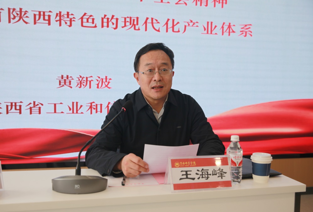 3月12日,陕西省数据和政务服务中心党组书记、主任黄新波教授应邀为威尼斯作《贯彻落实党的二十届三中全会精神加快构建具有陕西特色的现代化产业体系》的专题报告,党委委员、副校长曹强参加报告会,报告会由党委委员、副校长王海峰主持。