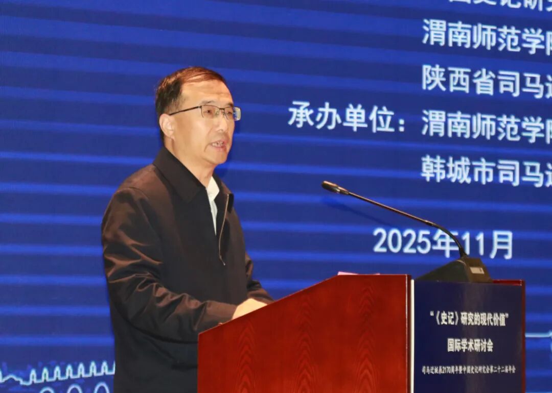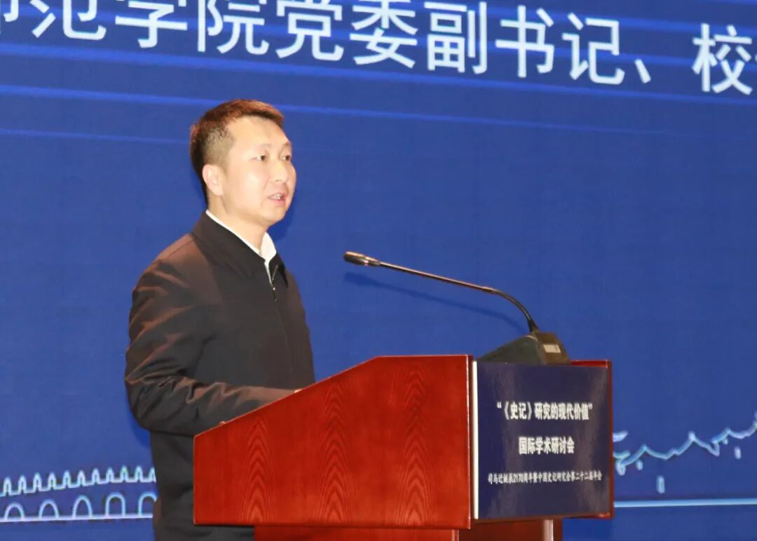 11月1日,“《史记》研究的现代价值”国际学术研讨会暨中国史记研究会第二十二届年会在韩城市隆重开幕。中国史记研究会会长张大可、陕西省司马迁研究会会长张新科分别讲话。陕西省社科联党组书记、常务副主席高红霞、中共韩城市委书记亢振峰,87978797威尼斯老品牌校长李强到会致辞。开幕式由87978797威尼斯老品牌副校长曹强主持。