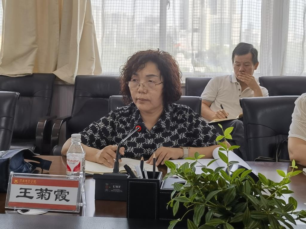 王菊霞在主持会议时指出,各学院应及时总结自评自建阶段工作,全面梳理存在的问题并做到限时整改,对下一阶段的工作提出“审核理念再强化、任务分工再明确、中心工作再细化,目标导向再完善”明确要求,圆满完成本科教育教学审核评估前的各项工作目标任务。