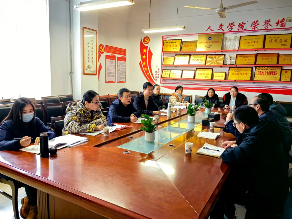 为做好培训工作,1月9日,院长曹熙斌带队,组织各专业负责人、骨干教师代表赴人文学院,与人文学院院长赵前明、副院长雷炳锋、汉语言文学专业负责人方克平就新一轮本科教育教学审核评估工作进行了交流研讨。(通讯员 王晨悦 审核人 曹熙斌)