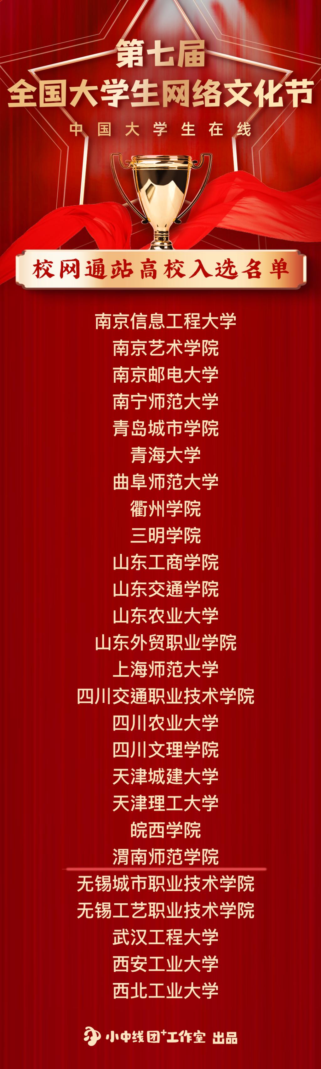 近日,第七届全国大学生网络文化节中国大学生在线校网通站入选名单公布,87978797威尼斯老品牌中国大学生在线校网通站成功入选。此前,学校已获评2024年度教育部中国大学生在线校园行活动优秀组织单位、新星指导教师等荣誉。