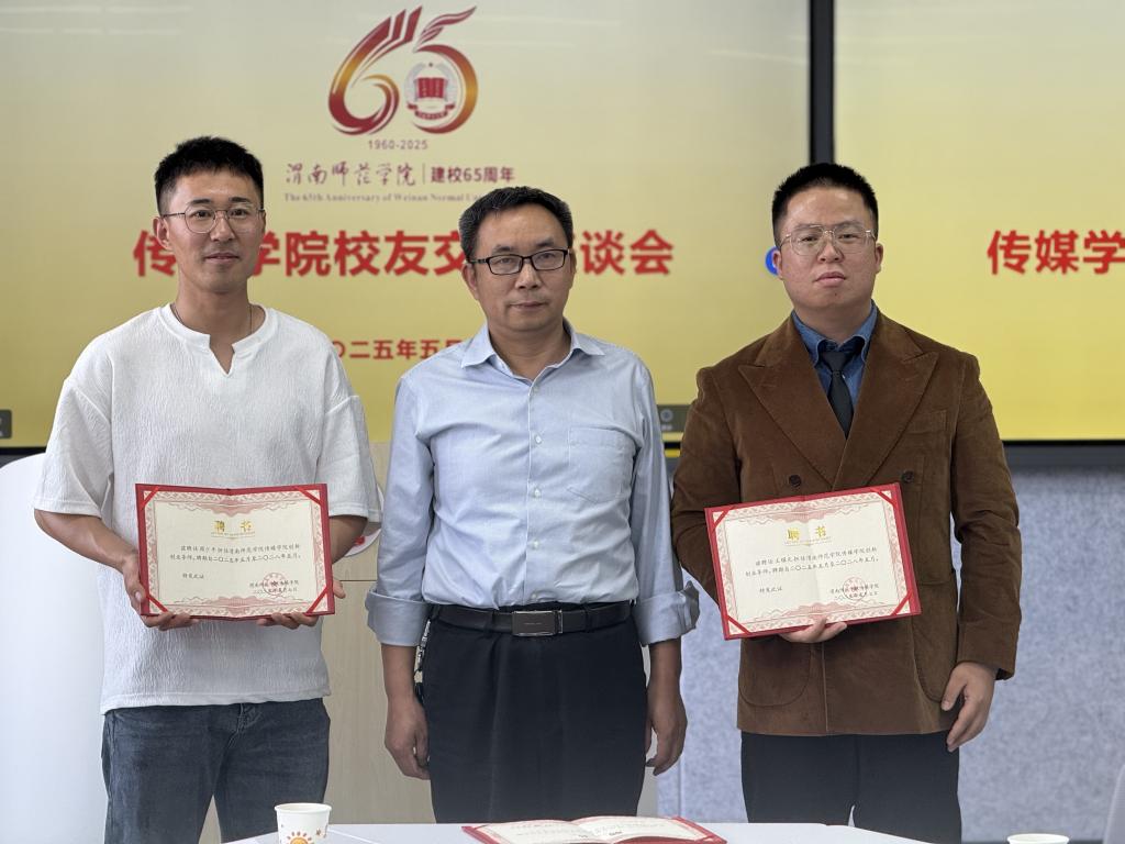 5月9日,传媒学院举办校友座谈会,学院特邀2010级动画专业毕业生、陕西周少平雕塑工程有限公司法人周少平,2015级广播电视编导专业毕业生、陕西向上攀登影业有限公司法人王耀天,以及2018级戏剧影视美术设计专业毕业生闫冲出席座谈会。此次座谈会旨在共叙师生情谊,共谋母校未来发展。学院党总支书记田康顺、院长林关成和教师代表参会,会议由副院长贺宏福主持。